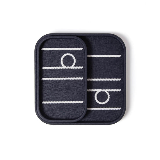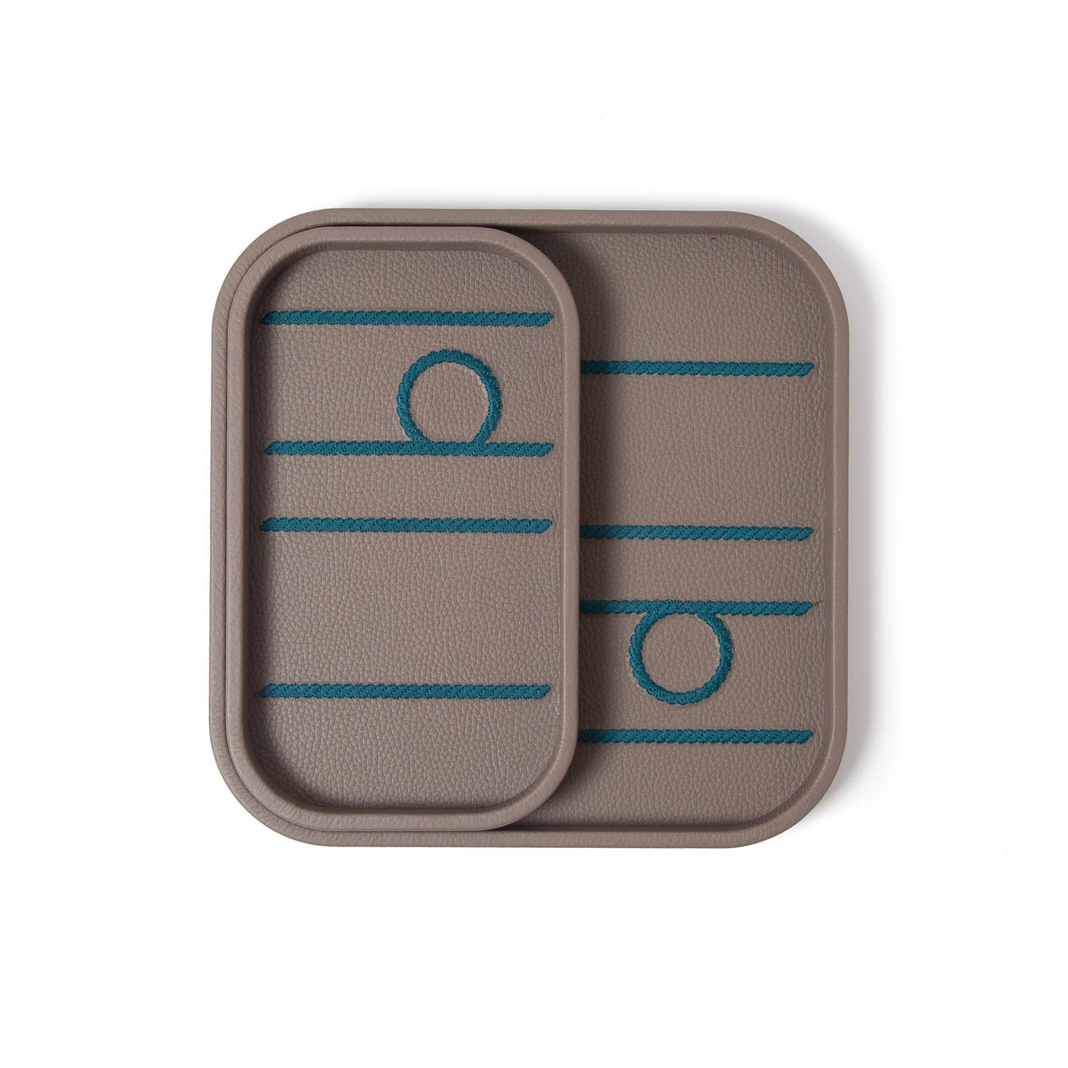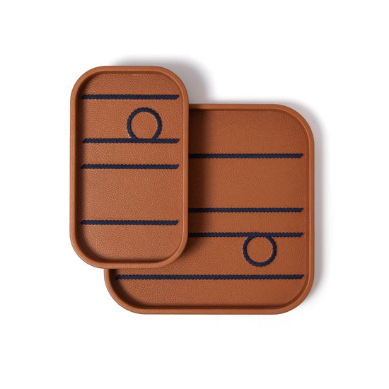 Dive into style with this playful set of two leather trays, each embroidered with sea-inspired knots for a splash of charm.