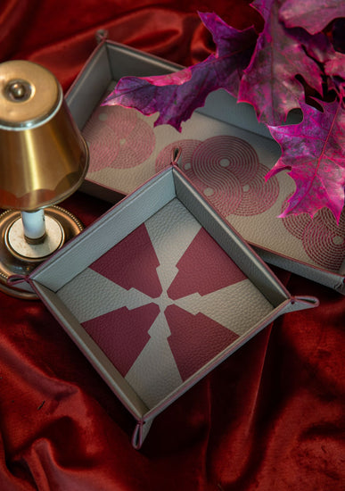 A sculptural leather catchall tray inspired by the geometry of the Eiffel Tower and Madame’s enduring love for Paris.
