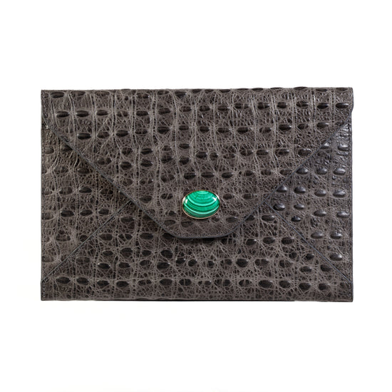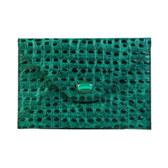 Crafted in hand-embossed leather and lined with our signature green malachite lining, the Spotted Envelope is a tactile symbol of allure, mystery, and intention. Playful yet composed, it slips into your hand like a secret ready to carry love letters, cards, or simply a spark of surprise.